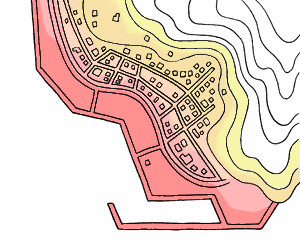 ステップ4:完成浸水深により色分けして地図を作成します。浸水深は8段階で表現しています。 |
